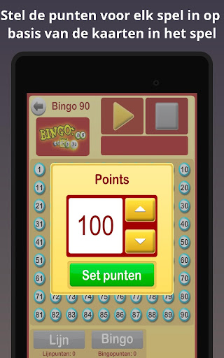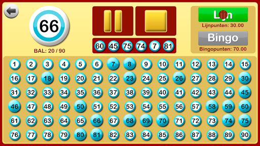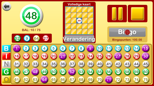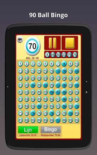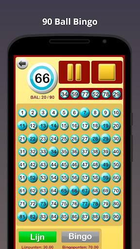 Wanneer een bingospel start, begint de app de bingoballen te roepen. Het spel kan worden gepauzeerd en opnieuw worden gestart zoals nodig, bijvoorbeeld om te controleren of de lijn of de bingo correct is, om te controleren of alle nummers al geroepen zijn, enz.