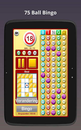 In de 75 bingoballen variant is er slechts één prijs, de winnaar is de eerste die de vorm die momenteel gespeeld wordt op de bingokaart voltooid. De app heeft verschillende vormen om uit te kiezen die u kunt voltooien. Met elk nieuw spel verandert de vorm; u kunt het spel met deze vorm starten, of een nieuwe vorm kiezen.