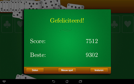♣ Je solitaire spel wordt automatisch opgeslagen als het spel wordt onderbroken; je kunt daarna doorspelen waar je was gebleven