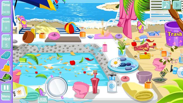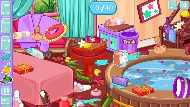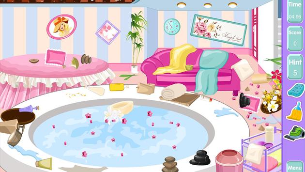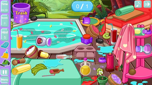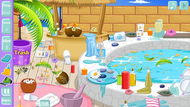 Schoonmaken is niet altijd leuk, maak het kan wel leuk zijn. Met het Kuuroordsalon Schoonmaak spel wordt het een hele leuke uitdaging om je eigen kuuroordsalon schoon te maken! In een race tegen de klok kun je er achter komen of je slim genoeg bent om alles binnen de tijd op zijn plaats terug te zetten! Met dit schoonmaakspel kun je plezier maken terwijl je de handdoeken opvouwt en opstapelt, de kussens terug legt, de massage stenen opstapelt, en alle tubes en flesjes op zijn plaats terug zet, voordat je vloer dweilt, alle rommel opruimt en je kuuroord stofzuigt! Je kan zoveel plezier beleven aan dit schoonmaakspel voor meisjes dus vraag je vrienden en kijk wie zijn salon het snelst kan schoonmaken.