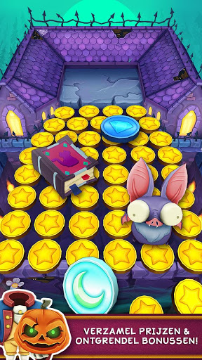 Laat gouden munten in de Halloween thema-duwer vallen, bedelf ze in een stapel en over de rand om te verzamelen. Schud de machine om vleermuizen los te laten en snel nog meer munten te verdienen. Speciale munten verschijnen en geven je een handige boost, met inbegrip van de nieuwe spook-en maan munten! Verzamel de prijs en puzzelstukje verzamelobjecten die op het machine bord verschijnen voor het voltooien van prijslijnen en het ontgrendelen van bonussen! Keer dagelijks terug om je geregenereerd munten te besteden!