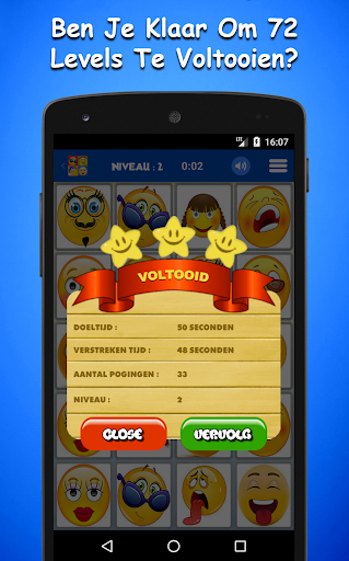 * Het spannendste deel van het spel is de uitdagingsmodus. In deze modus zijn er 72 levels die voltooid moeten worden. Het spel wordt steeds moeilijker op elk nieuwe level. De plaatsing van afbeeldingen worden willekeurig veranderd tijdens elke spel. Uw hersenen zullen op verschillende levels worden uitgedaagd. Als u het 72ste level bereikt, betekent dit dat u een bewezen visueel geheugen hebt!