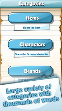 bevat categorieën van woorden die geschikt zijn voor kinderen en volwassenen. Er zijn fictieve personages, populaire merken, objecten en items. Bovendien kunt u de namen van zangers, films, acteurs en actrices raden. Daarom, aarzel dan niet! Download deze uitstekende educatief spel, verrijk uw algemene kennis, en te herzien je vaardigheden verbeteren. Het plezier begint nu!