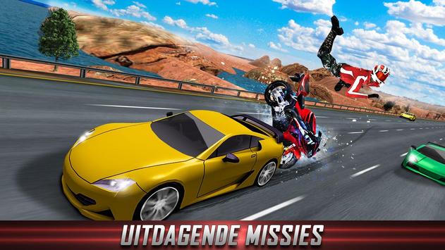 De racers op het autosnelwegverkeer is een epische en actievolle ervaring van racen op drukke straten in de stad terwijl je de verschillende geweldige ritten rijdt. Steek uw sportwagens aan, race op de quads of doe een gek ritje op een skateboard, de keuze is aan u. Je kunt ook genieten van het leuke racen tijdens het fietsen of het uitvoeren van stunts op je superfiets. Deze stad Snelweg stunt Race2 game is een nieuw tijdperk in de categorie racegames met zijn unieke concept. De graphics van het spel zijn super cool met high-poly gedetailleerde texturen en echte 3D-modellen. Terwijl je je zware fietsen racen met een bliksem snelheid en spring over de hellingen om de wilde stunts uit te voeren. Doe de gekke backflips met voorwielrijders tijdens je gekke superfietsrace en ontwijk het inkomende verkeer om op tijd de finish te bereiken. Download gewoon dit geweldige multi-ride-spel en beleef een leuke race-ervaring.