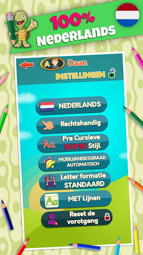 • 5 progressie niveaus, kleur gecodeerd voor elke glyph die ouders en docenten een directe evaluatie van de progressie en meest uitgeoefende letters op het alfabetniveau mogelijk maken.