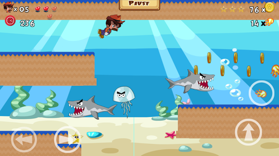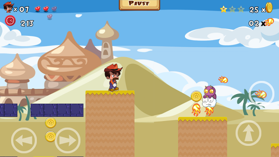 Join cowboy in his adventure, have fun in this game. Be careful the cute little monster, you can use bullet to kill them. Collect 100 coins to get one more life! Jump, Run, Shoot, Skating. Try you best to pass all the levels! Collect all stars can get more scores. Enjoy the one of the best platform games ever. Download Super Cowboy now and start playing this amazing game!