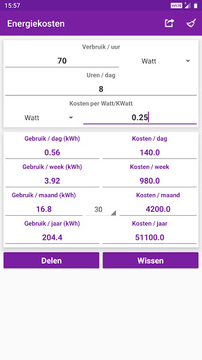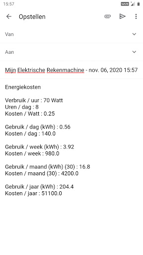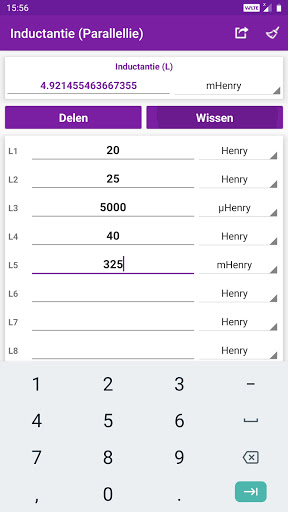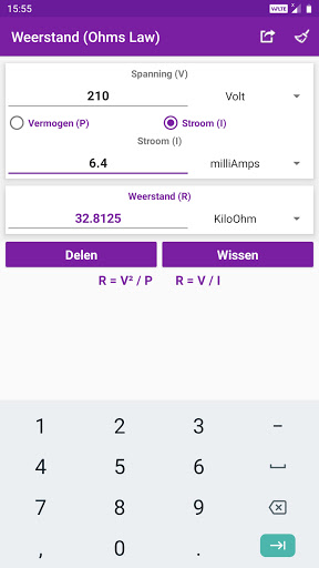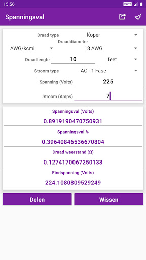Berekende waarden en resultaten kunnen worden gedeeld met sociale media, e-mail, berichten en andere deel-apps.