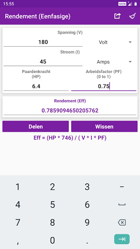 Mijn Elektrische Rekenmachine bevat 45 rekenmachines, die snel en gemakkelijk kunnen berekenen verschillende elektrische parameters. Automatische berekeningen en conversies met elke eenheid en de waarde verandert. Berekende waarden en resultaten kunnen worden gedeeld met sociale media, e-mail, berichten en andere deel-apps. Een must nut hebben.