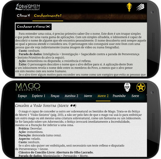 De afstand van een klik heeft alle spreuken van het goochelaarboek: het ontwaken en de geschenken van weerwolf: de verstoken van de eerste Braziliaanse editie van de wereld van duisternis.Deze stijlvolle app versnelt het overleg van vertellers en spelers, waardoor de kroniek veel leuker is.