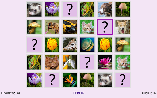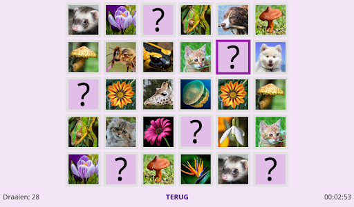 Het klassieke memory spel met echte natuurfoto's. Oefen je geheugen. Leuk voor jong en oud.