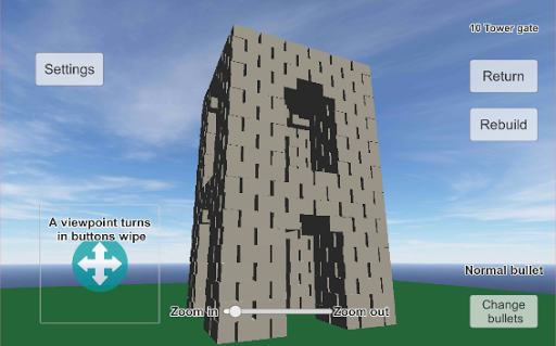 Sla een bal en vernietig een cilindrisch gebouw en het gebouw alleen voor pilaren die een blok opgestapeld.