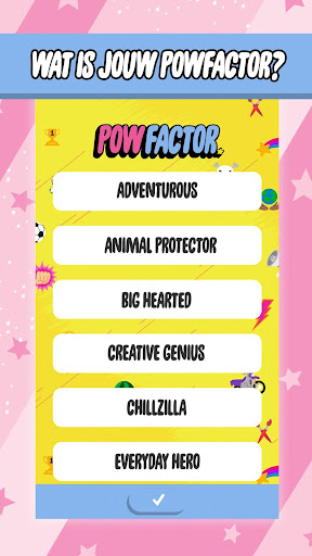 Zodra je jezelf tot Powerpuff-personage hebt omgetoverd, kies je een Powfactor: je speciale superkracht! Ben jij een trouwe vriend? Heb je LOL-kracht? Wat is jouw Powfactor?