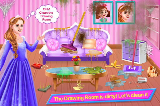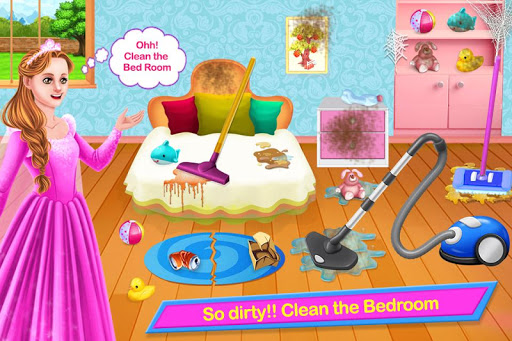 Zorg gewoon voor Dream Princess House door het schoonmaken en decoreren. Laten we het grote huis reinigen. Schik, renoveer, wassen, wissen, vacuüm, repareren en versieren alle dingen in Princess Palace.