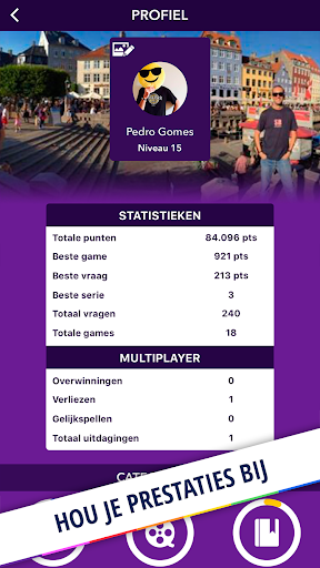 Quizit toont je een stel statistieken, zodat je je prestaties in het spel kunt volgen en je steeds kunt proberen om je hoogste score te verbeteren!