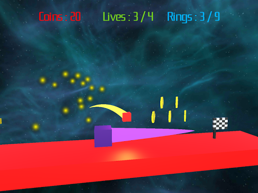 Switch color of the player cube depending on the color of the platform you land on. Land on the platforms precisely and with the right color. Collect rings by switching to their color. Dodge the enemies in your way to make your way to the finish. Left tap to Jump and Double Jump. Right tap to switch between Red, Green, Blue colors of the cube.