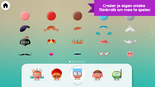 Overal wachten spannende uitdagingen op je! Sus een coole krokodil in slaap met een liedje. Laat een gek spook verdwijnen met weerkaatst licht. Verzamel lekker snoep en edelstenen om de draak van het kasteel tevreden te maken. Win kronen, tiara's, snorren, kostuums en nog veel meer majesteitelijke accessoires om je eigen unieke Thinkroll-personages te creëren.