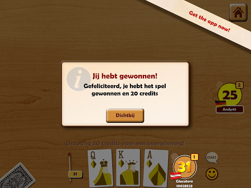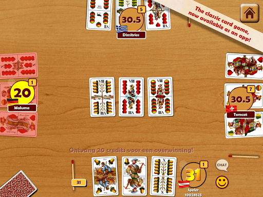 Eenendertigen, ook bekend als 31 of Trente et un, is een van de populairste online multiplayer kaartspellen net als Patience, Skip-Bo, Klaverjassen, Hartenjagen, Klondike, Pesten en Rami Bridge. En nu is het gratis verkrijgbaar voor je smartphone. Eenendertigen (31, Trente et un) is een snel en makkelijk gratis online kaartspel voor jong en oud. Een online klassiek kaartspel en een gezelschapsspel dat je samen met vrienden speelt!