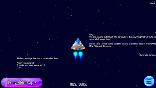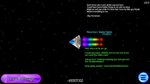 Explore the funny, dirty, witty, inspirational, cynical minds of thousands of people in this NEVER DONE BEFORE social experiment/pseudo-multi-player/message board/public toilet wall in space GAME.
