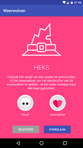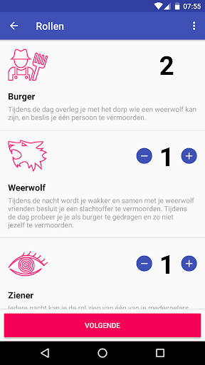 Als jij ook het gezelschapsspel weerwolven (ook wel bekend als Mafia), maar je mist het kaartspel en je hebt geen zin om telkens zelf kaartjes te maken met pen en papier. Dit is de app voor jou! Stel simperweg in met hoeveel spelers je bent, welke rollen je wilt hebben, bijvoorbeeld, hoeveel weerwolven, en je bent klaar om te spelen. Aan de hand van je mobiel of tablet worden alle stappen verteld.