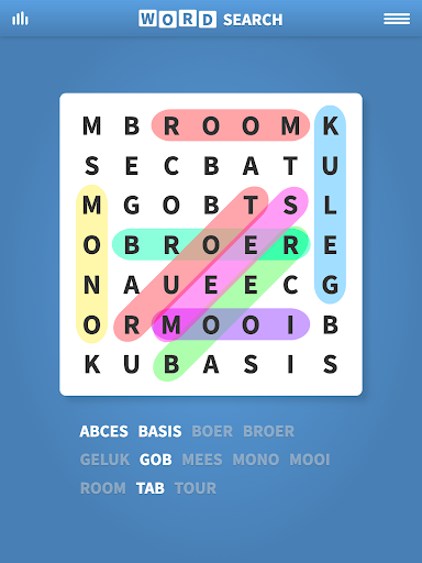 Het doel is om de lijst met in het raster verborgen woorden te vinden. Worden kunnen horizontaal, verticaal, diagonaal of achterwaarts verborgen zijn. Veeg en sleep om woorden in het raster te selecteren zodra ze zijn gevonden, beginnend met het eerste letter van het woord. Probeer onze zoekmodussen voor experts en een unieke moeilijkheidsgraad met lijsten met obscure woorden.