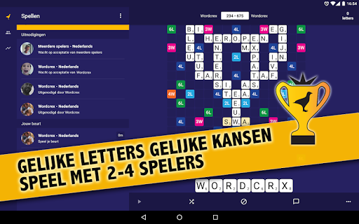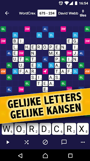 WordCrex is het woordspel waarbij je anders dan bij Scrabble® met dezelfde zeven letters speelt als je medespelers, dus geluk hebben met de juiste letters krijgen is geen factor meer! Je krijgt de punten van je eigen gespeelde woord en alleen het winnende woord komt op het bord. Je wint wanneer je de meeste punten hebt gehaald als alle letters gespeeld zijn.