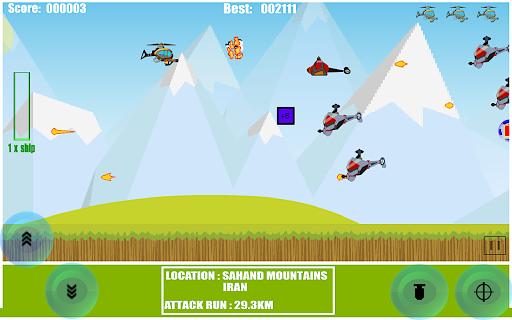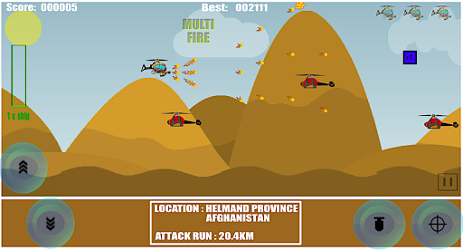 _ post een score en daag je vrienden uit op _ pak alle extra wapens op en wreak havoc van je Super Defender Chopper!