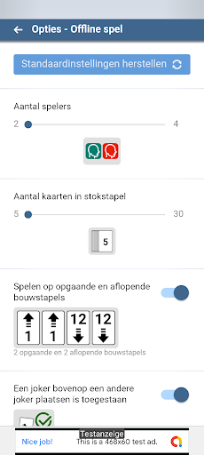 • Kies of je klassiek speelt met «vier oplopende bouwstapels» of met «twee oplopende en twee aflopende bouwstapels»