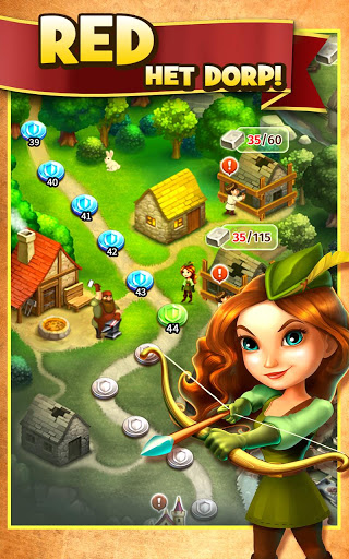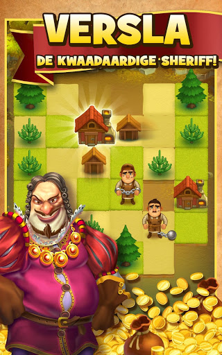 Waarom DRIE-IN-ÉÉN in plaats van drie-op-een-rij? Sluit je aan bij Robin Hood op haar avontuur om de kwaadaardige Sheriff van Nottingham te verslaan en de dorpsbewoners te redden! Maak combinaties van drie of meer om grotere, betere voorwerpen te maken en zo goudstukken te verdienen. Hoe meer puzzels je oplost, hoe sneller je Robin helpt op haar avontuur om geld aan de armen te geven, de tirannieke sheriff te verslaan en de orde in Sherwood Forest te herstellen. Drie keer zo veel strategie en plezier als met een typisch drie-op-een-rijspel in dit gloednieuwe puzzelavontuur!