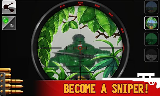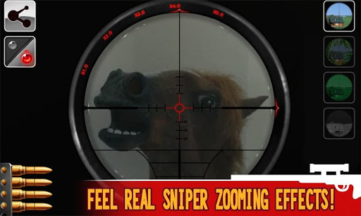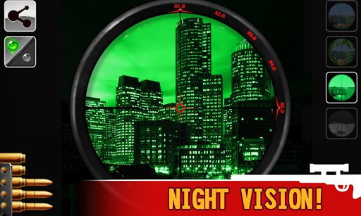 Naast het kunnen doen alsof je een sluipschutter bent en je telefoon is een sluipschutter geweer, maakt sniper gun camera je in staat om te schakelen tussen nachtzicht / normale visie en zoomen in / uit het bereik.