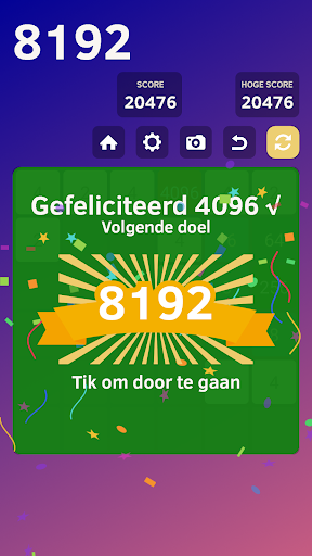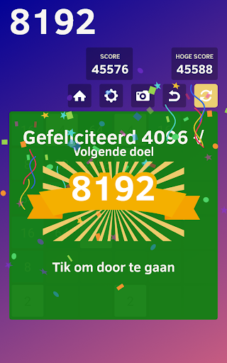 Er zijn 3 kleurrijke, 2 kleurrijke en klassieke opties met vijf moeilijkheidsgraden, waaronder 4x4, 5x5, 6x6, 7x7 en 8x8 in de 2048 Kleurrijke