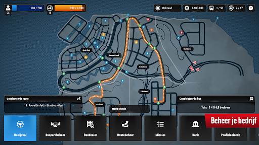 Laat je rijkunsten zien: klim naar de top en bouw een succesvol busvervoerbedrijf op. Naarmate je verder komt in de campagne, kun je meer bussen, wijken en routes ontgrendelen. Breid je vervoersnetwerk uit door routes te rijden. Zo verdien je meer credits waarmee je meer bussen kunt kopen en steeds meer bussen kunt toewijzen aan je routes. Het succes van het bedrijf ligt IN JOUW HANDEN!