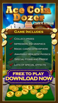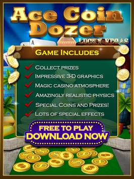 Ace Coin Dozer Lucky Vegas Arcade Game and enjoy the thrill of Vegas and feel the betting, black jack, dealer, upping the ante in a big Vegas bonanza!