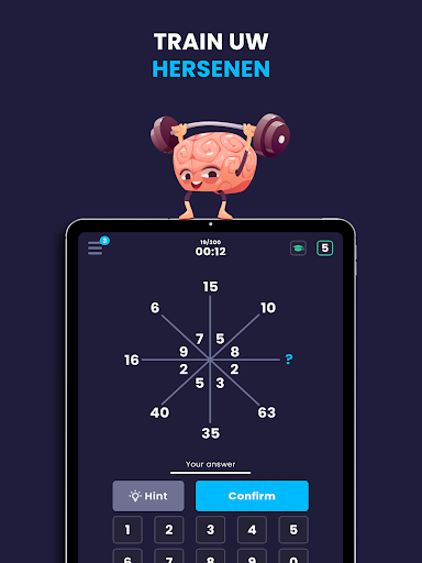Brain Training ( Hersentraining ) - Deze logisch wiskundige puzzel denkspel is geschikt voor iedereen die houden van calcudoku , denken spellen, kenken, enigma cijfers, hersenen quizzen , mensa test , intelligentie spelletjes , kahoot spel , geheugen games , mathdoku , breinkrakers ( hersenkrakers ) , concentratie quiz spel , nonogram nummers spelletjes , brilliant spel , duolingo math spel , onderwijs, ingewikkeld vragen, rekenen raadsels . Ons trivia denkspel is de beste keuze voor slim en intellectuele personen om hun wiskundige kennis te testen.