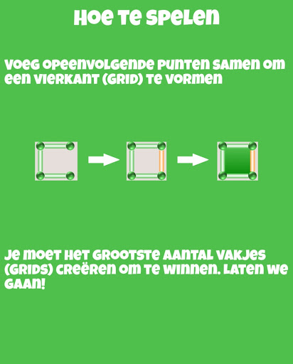 Om beurten zul je opeenvolgende punten moeten verbinden om vierkanten te vormen (Grid). De speler die de meeste rasters voltooit, is de winnaar.
