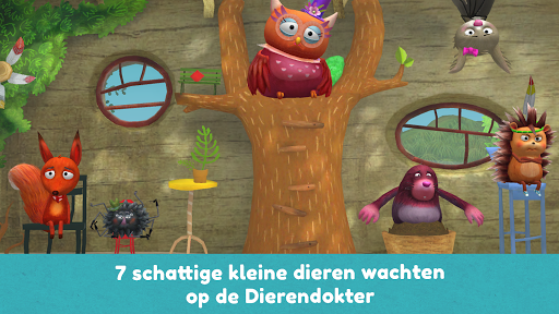 De app zit barstensvol humoristische animaties, fantastische 3D-illustraties en grappige korte filmpjes. In een magisch boomhuis is de praktijk van de dierendokter. Daar wachten de dieren op hun genezing. Kinderen passen op een speelse manier behandelingen toe die ze zelf misschien ook hebben gehad: meten van de temperatuur, innemen van medicijnen, opplakken van een pleister. En het eten van een slak is natuurlijk alleen goed voor uilen!