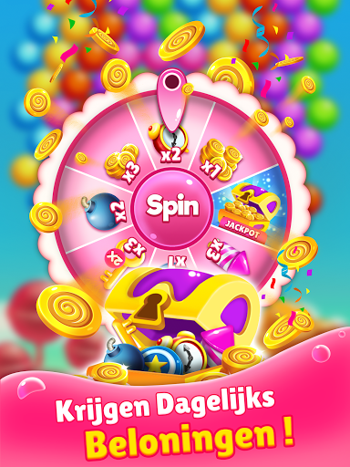 Speel ook meer en word beloond met tonnen gratis beloningen van spinwielen en mystery boxes. Er zijn geen verrassingen met Candy Bubble Games.
