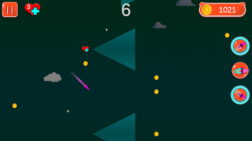 Controleren van raket door op het scherm te tikken, en passeer tussen twee obstakel en krijg punten.