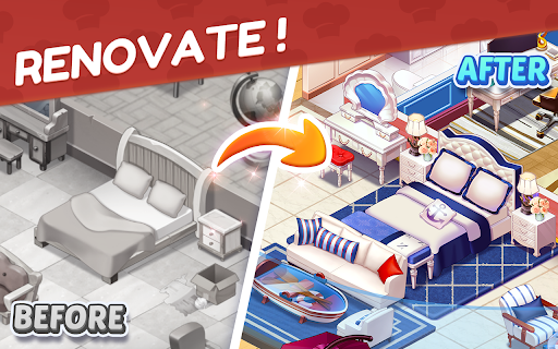 ✨! Decorate and renovate your bedroom, kitchen, hall and other rooms in just the way you want! Explore your creativity with hundreds of design options and create your dream yacht while playing this engaging best cooking game, restaurant game and kitchen game!