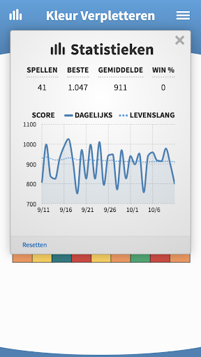 Volg uw hoogste en gemiddelde scores in Kleur Verpletteren door de tijd heen met onze statistieken volger.