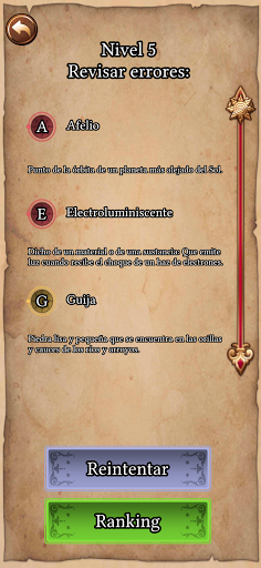 Er zijn verschillende gamemodi en elk heeft veel niveaus, waardoor de moeilijkheid geleidelijk toeneemt;Aan het begin verschijnen lage moeilijkheidsgraden, die overeenkomt met gemeenschappelijke woorden van dagelijks gebruik, maar op de meest geavanceerde niveaus lijken moeilijkere definities en meer specifieke woorden, tot het bereiken van de grootste moeilijkheidsgraden die localismen omvat, latinms weinig gebruikt en woorden in niet-gebruik.
