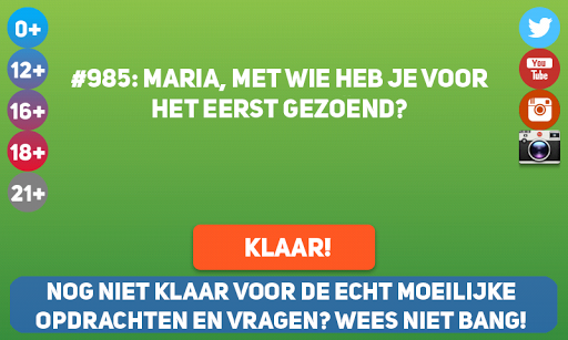 Durven of de Waarheid PRO - leer je vrienden écht kennen! Altijd al willen weten over die eerste kus van een vriend of vriendin? Of vraag je je al jaren af hoe dat ene meisje over je denkt? Maak een feest of logeerpartij meer intiem en interessant met Durven of de Waarheid! Het nummer één spel om plezier te hebben met je vrienden.