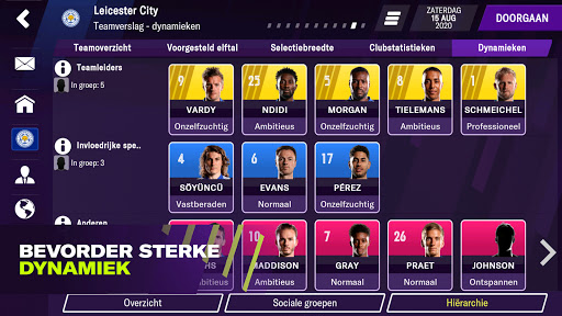 Ons opnieuw ontworpen Dynamics-systeem helpt je om een perfecte teamgeest te creëren met meer inzicht in de hiërarchie van het team en de band tussen je spelers. Met de nieuwe Clubaanvoerder heb je nu een meer directe connectie met de kleedkamer. Kies je leider zorgvuldig om op de wedstrijddag een streepje voor te hebben.