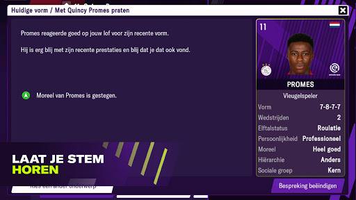 Profiteer van nieuwe manieren om je spelers te motiveren om ze net dat beetje extra te geven in belangrijke wedstrijden en vind je weg in het mediacircus op weg naar de top. Bedenk wel dat alles wat je zegt van invloed is op de sfeer in de kleedkamer. Profiteer ook van de vernieuwde interface met meer aandacht voor feedback van de spelers.