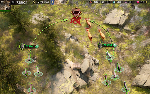 Bestuur uw wolvenroedel om te bewegen en te vechten met real-time strategie. Worden uw bondgenoten aangevallen? Stuur uw wolvenclans om ze te helpen, of overval het hol van de aanvaller als vergelding. Vergeet niet dat de wildernis verschillende terreinen heeft die uw marsroute beïnvloeden.