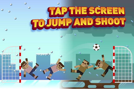 Tik op het scherm om tegelijkertijd te springen en te schieten. De eerste om vijf doelpunten te scoren wint!