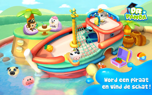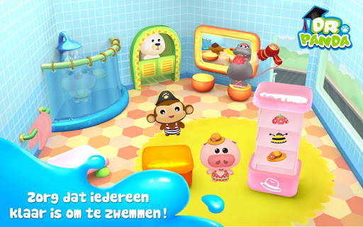 Spring in het water en speel met vijf schattige babydiertjes in Dr. Panda's Zwembad! Er zijn drie grote zwembaden en vijf diertjes waar je voor kunt zorgen, dus je kunt je eindeloos vermaken. Kleed ze aan in de kleedkamer, geniet van een snack aan de rand van het zwembad, glij van de glijbaan of duik van een piratenschip en ga op zoek naar verborgen schatten!