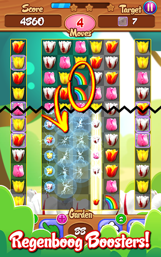 β Gebruik gestreepte γ°οΈ tulpen π· om een ββhele rij, elektrische β‘ 'boomer'-tulpen' weg te vegen om een ββblok van 9 tulpen en regenbogen π te vernietigen om al hetzelfde type tulpen tegelijkertijd te vernietigen; onder andere boosters