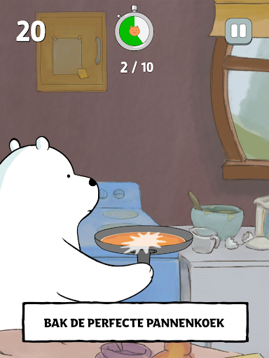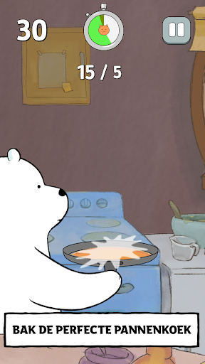 – Verdraaid goed – Draai de pannenkoeken van IJsbeer tot ze perfect zijn. Beweeg je apparaat om de pannenkoek om te keren. Hoe sneller je je apparaat beweegt, des te hoger de pannenkoek komt – maar pas op voor het plafond!