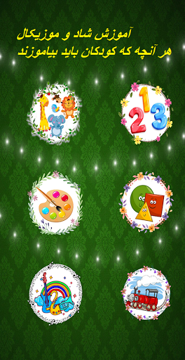 Dit programma is tweetalig (Perzisch-Engels).Door de omgeving te gebruiken, is het mogelijk om het te gebruiken om te gebruiken: Diertraining met dierengeluiden, cijfers, kleuren, voertuigen, muziekinstrumenten