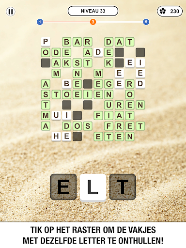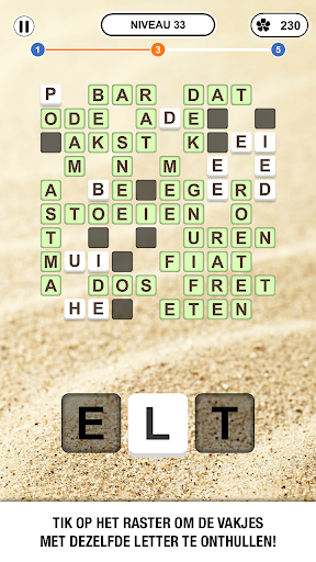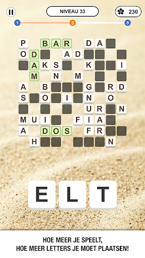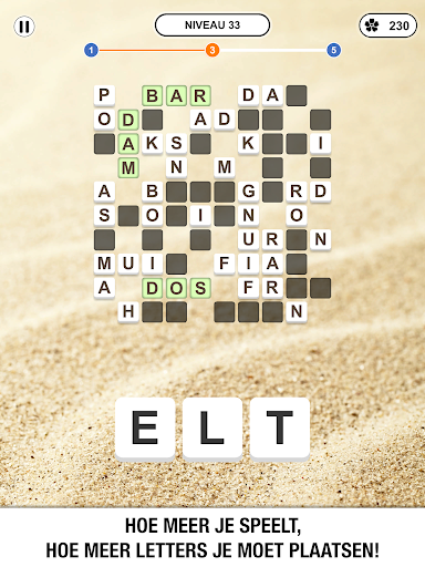 Word Crossing is beschikbaar in het Nederlands, Engels, Frans, Spaans, Duits, Italiaans, Portugees en Turks.
